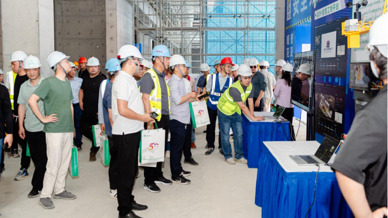 啟動儀式后,與會人員在工作人員帶領下先后來到質量樣板展示區、智慧工地展廳、大型設備展示區、實體樣板展示區、安全體驗區等,了解項目安全文明施工標準化、智慧建造、綠色施工、新工藝新技術運用成效。
